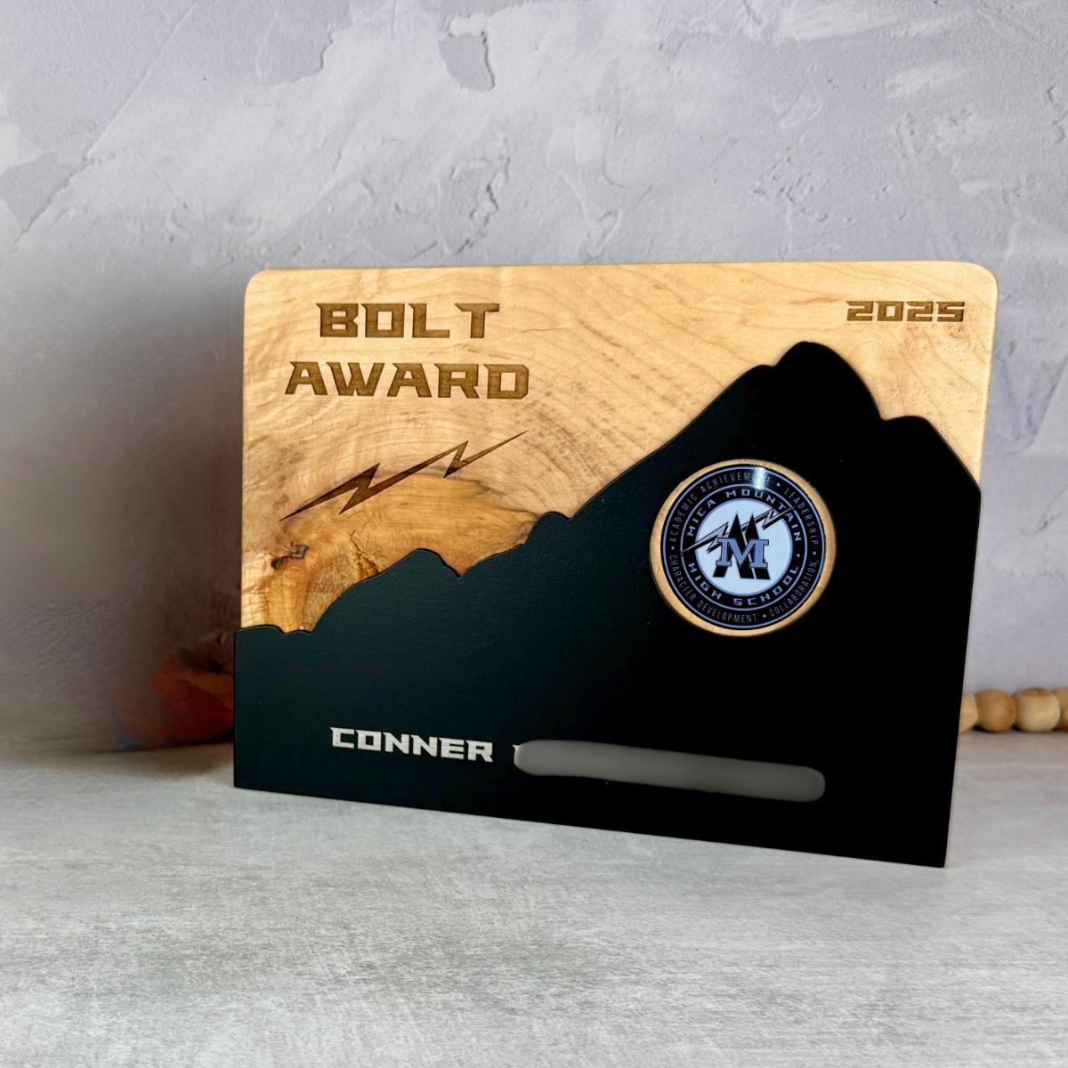 Bold, modern, and deeply meaningful, this Mountain Award is designed to honor those who rise above.