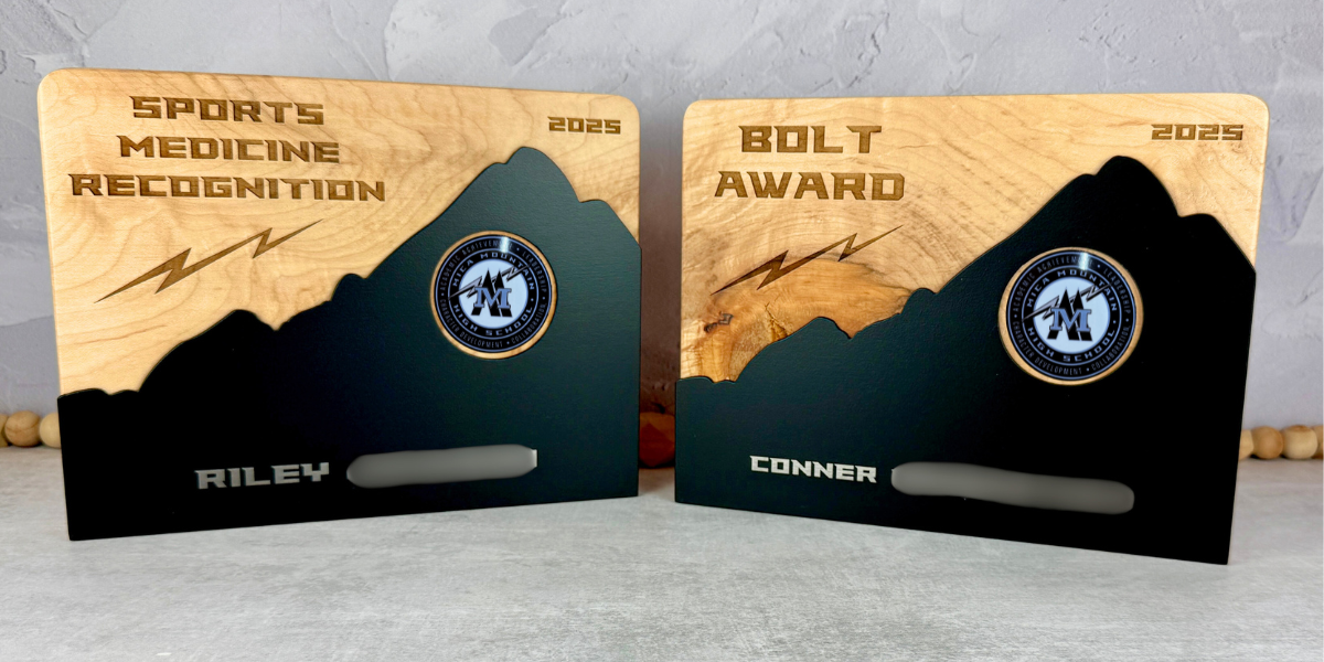 Our Mountain Awards are made from hardwood with modern black matte steel. Similar to our Modern Metal and Hardwood Awards, each award is handcrafted with attention to detail.
